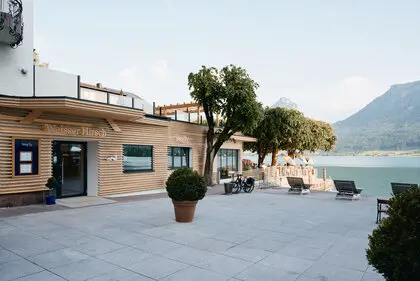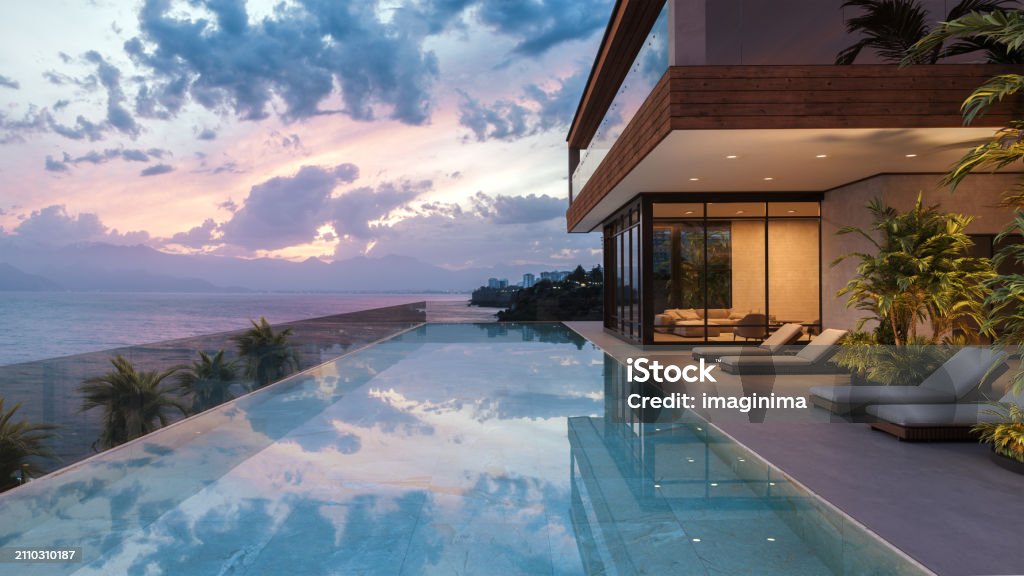 Yalın zarafet ve masmavi manzaraların birleşimi.